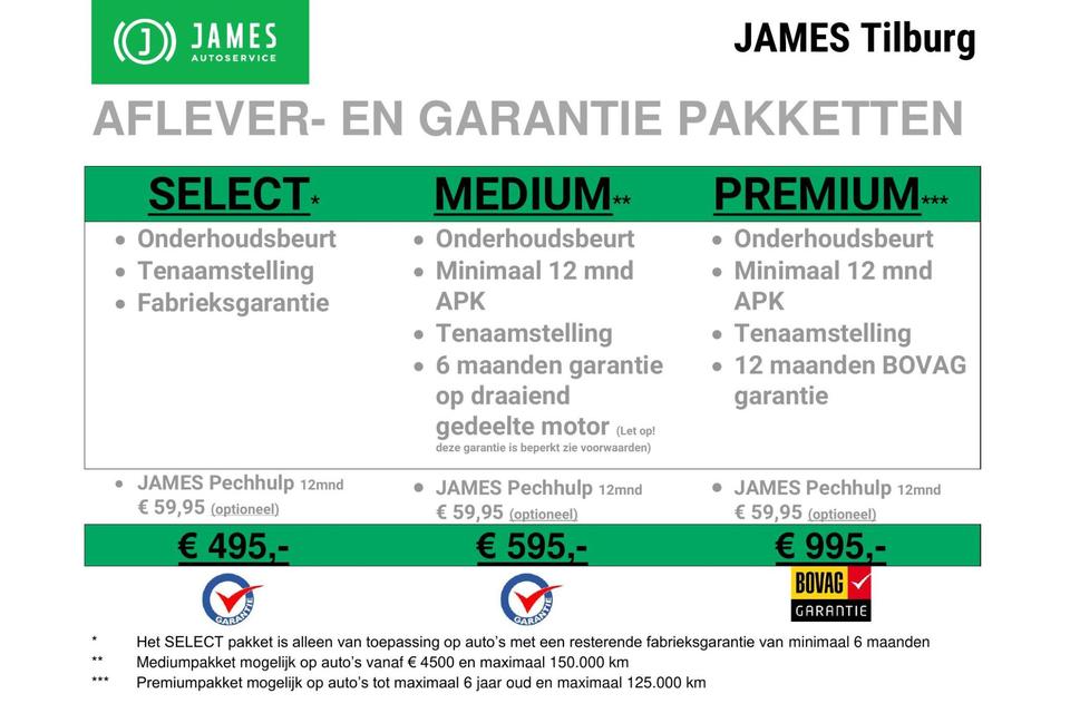 JAMES Autoservice Tilburg is al meer dan 35 jaar een begrip in Tilburg en omgeving. Bezoek onze website www.jamestilburg.nl voor meer informatie over ons bedrijf, ons actuele aanbod, aanvullende foto’s en een 360° video van onze auto’s.